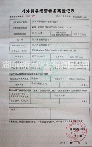 淄博輝標(biāo)耐火纖維有限公司是一家專業(yè)從事耐火纖維棉,陶瓷纖維和莫來石晶體纖維材料的研制開發(fā)、生產(chǎn)經(jīng)營(yíng)及施工于一體的綜合性公司,下屬淄博輝標(biāo)耐火纖維有限公司博山分公司、淄博輝標(biāo)耐火纖維有限公司外貿(mào)分公司、淄博輝標(biāo)耐火纖維有限公司窯爐工程分公司、淄博輝標(biāo)耐火纖維有限公司銷售分公司、淄博輝標(biāo)耐火纖維有限公司潮州分公司。